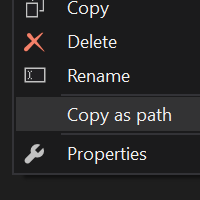 Copy as path command Download from the visual studio gallery Add a command to the context menu for project items that copies the absolute path of the item to the clipboard.