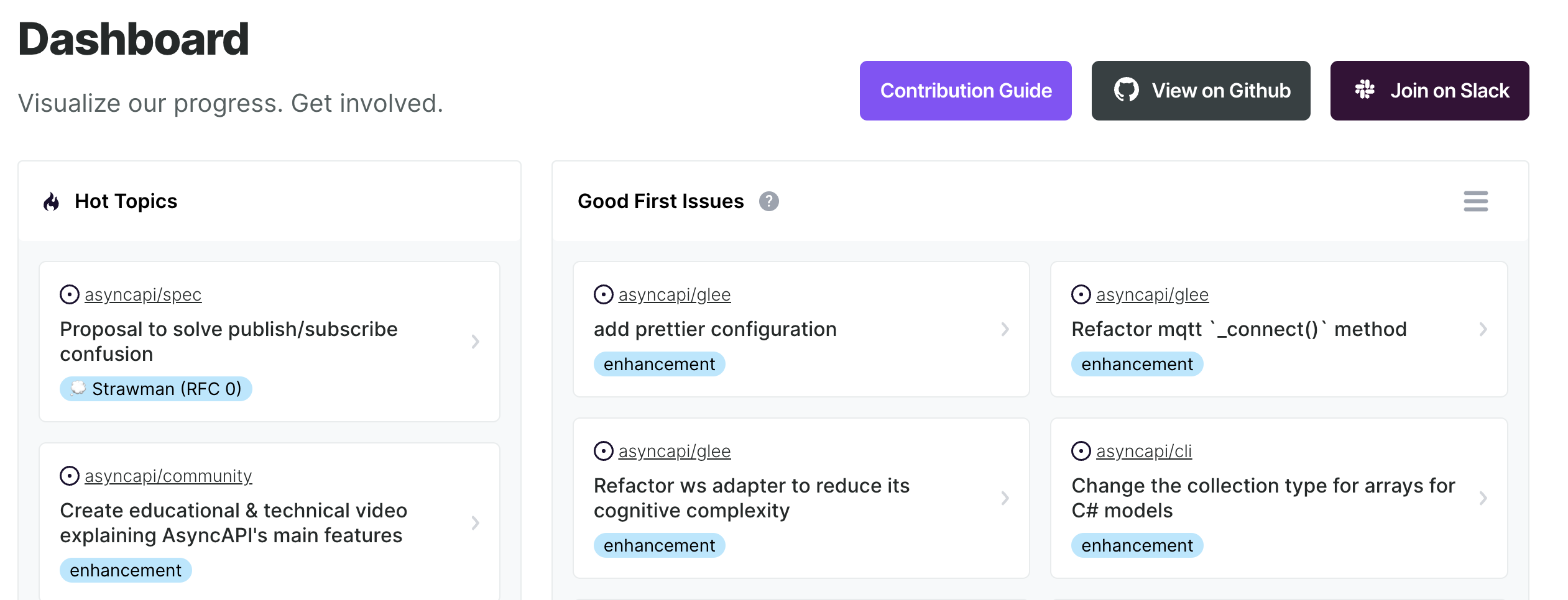 It could help user find out the tasks need help with [this dashboard feature](https://www.asyncapi.com/community/dashboard). <img width="1261" alt="image" src="https://user-images.githubusercontent.com/219644/226283308-636ed047-09f4-4878-aafe-325b58342cf4.png">