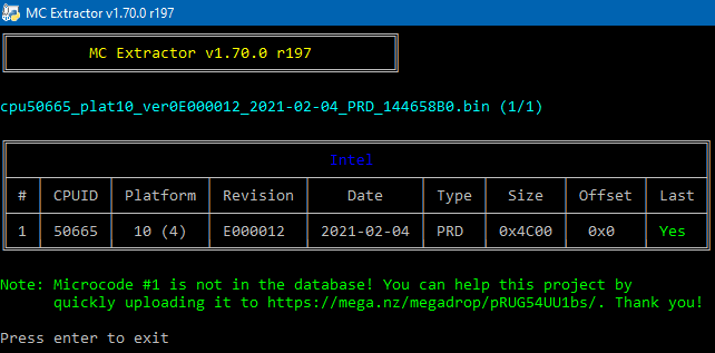 - Ability to automatically extract Intel Extended microcodes