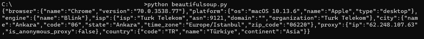The following example provides you with a basic request using a proxy to a specific website, if you want to learn more about Beautiful Soup, make sure to check their documentation here.