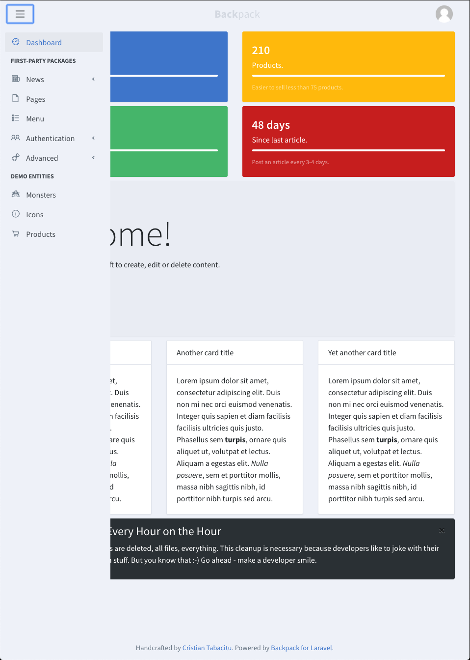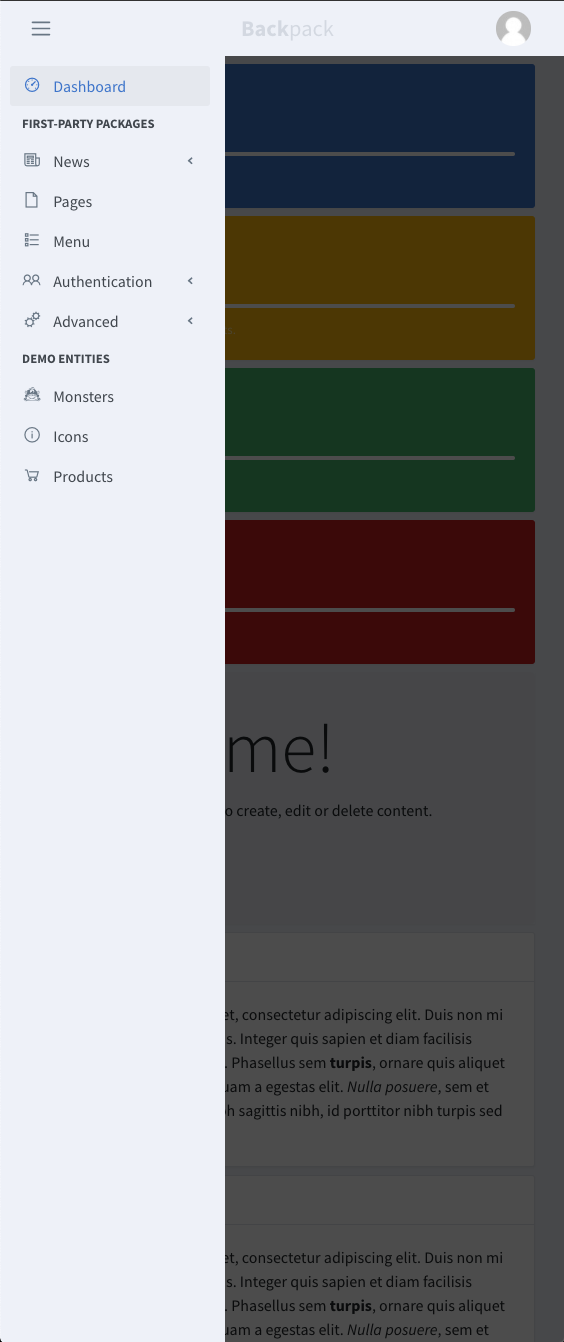 When opening the sidebar on mobile, the main content is covered by a semi-transparent dark overlay: