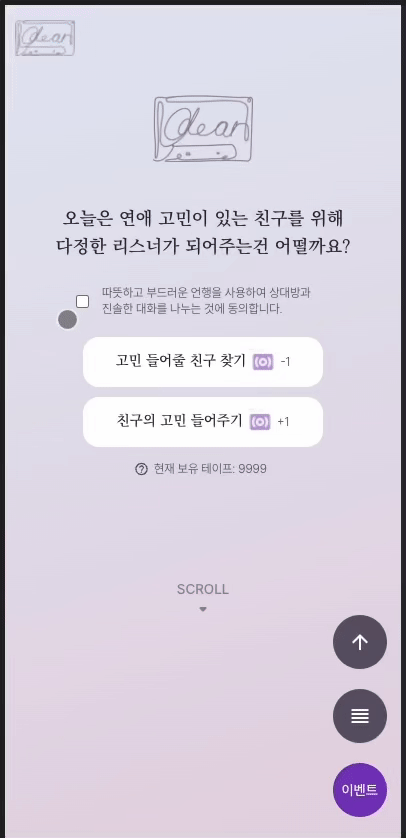 - ์ฐ์ธ์ ์ ๋ฌผ๊ณ ๋ฏผ! ๊นป์ ๋ ผ์ ๋ฑ ๋ค์ํ ์ฃผ์ ๋ก ์ํต์ด ๊ฐ๋ฅํ ์ต๋ช ์ปค๋ฎค๋ํฐ ์๋น์ค