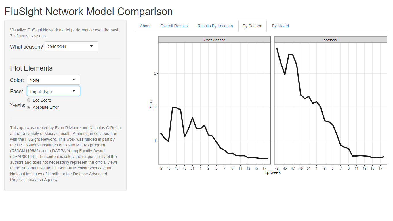Shiny app for FluSight Network model comparison with a focus on by-epiweek performance created for the ReichLab by Evan Moore and Nicholas Reich. To view the app on shinyapps.io click here. If you would like to download and run the app on your own machine, follow these steps: