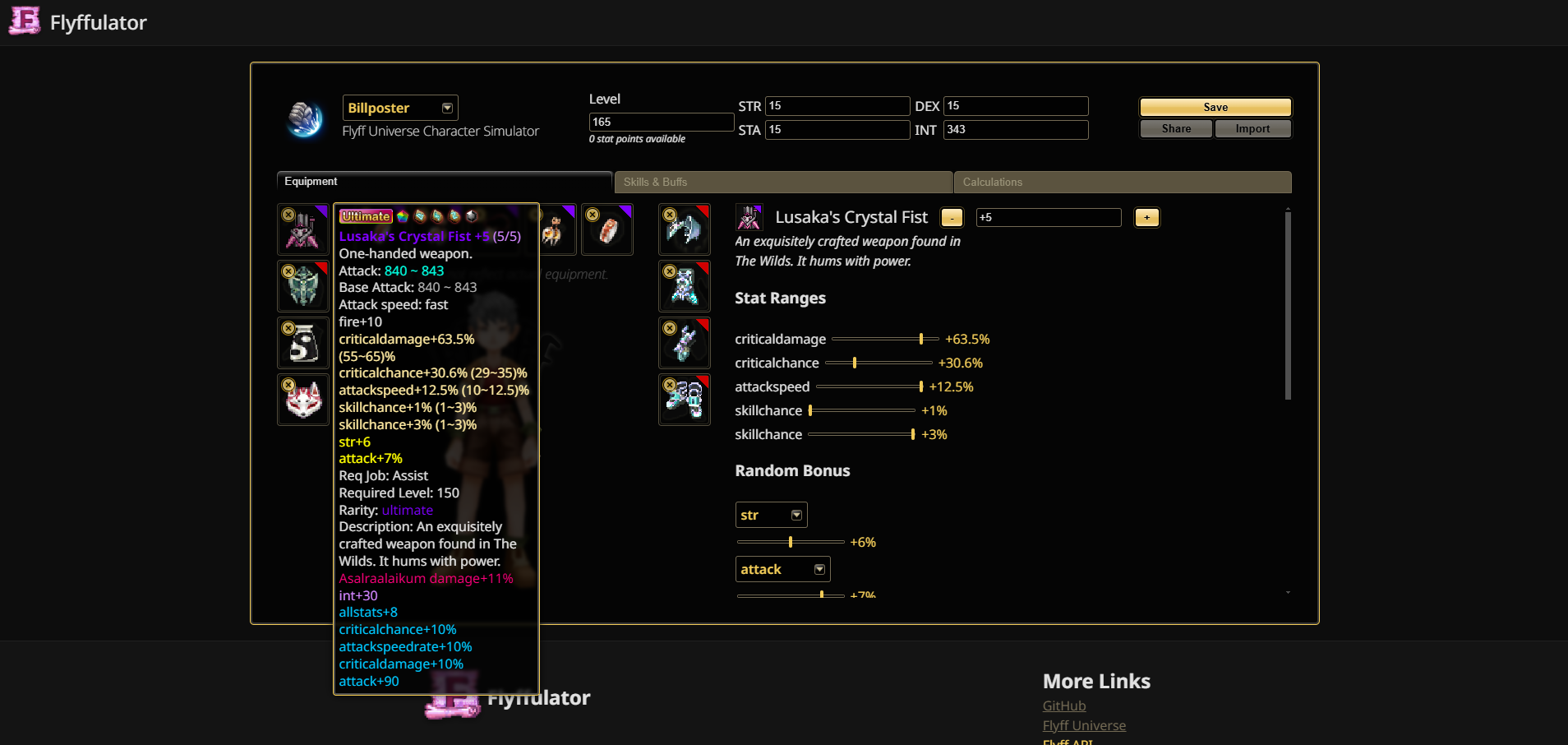 Flyffulator is a website for Flyff Universe players to simulate characters and be able to calculate an optimal build.