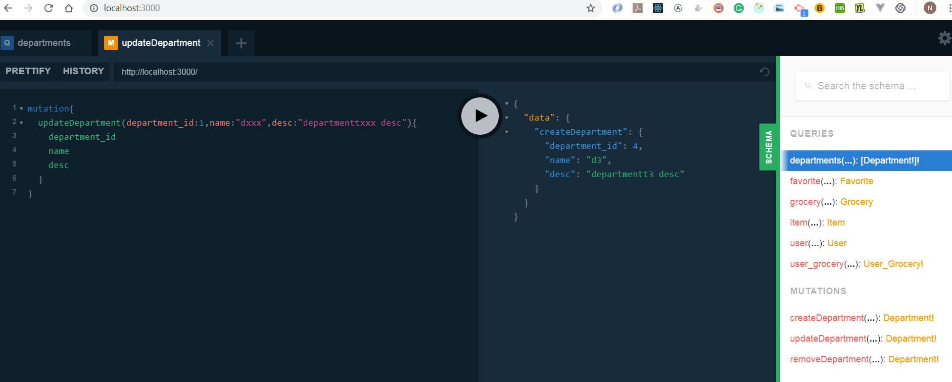 Graphql server will be running in http://localhost:3000/