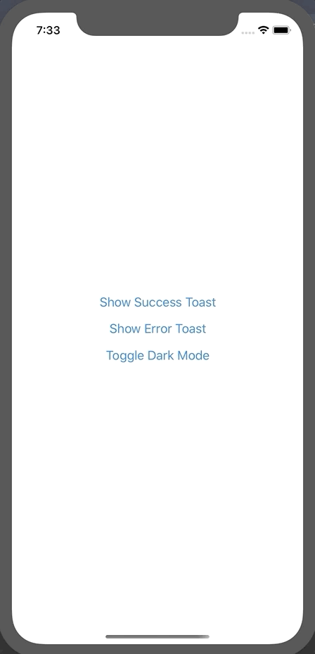 </ToastProvider>Because of the theming capability of react-native-styled-toast, it has out of the box support for dark mode. All you need to do is ensure the color keys you're using for your different modes are the same