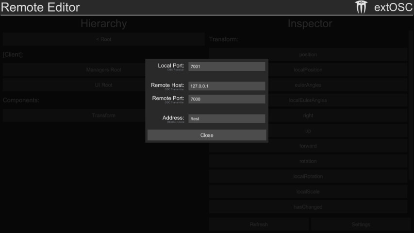 Remote Editor based on extOSC asset.