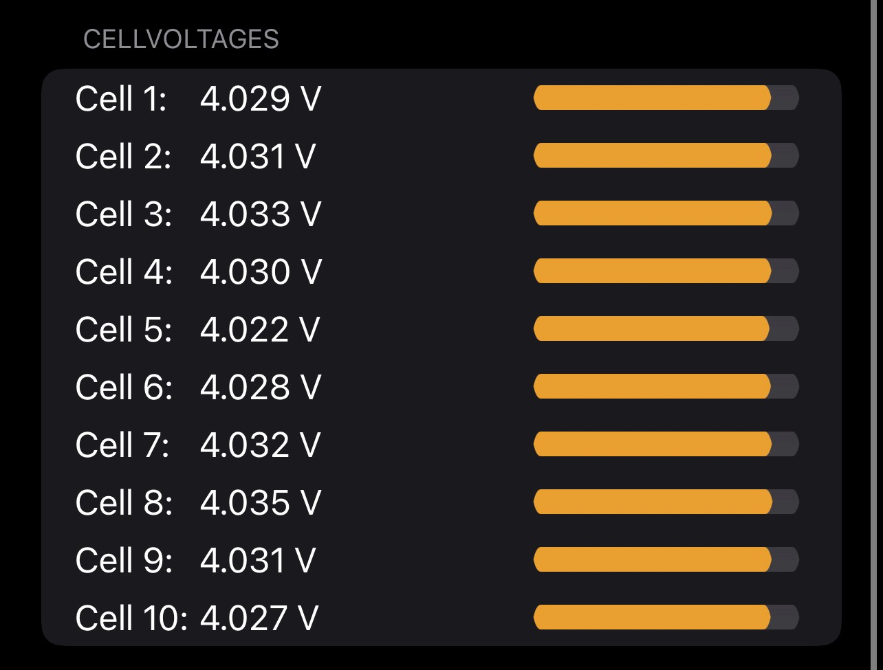 i really really appreciate your detailed list. It makes helping people like you much much easier. So you have a 10S battery pack. So the lower battery voltage (assuming you use 3000mV instead of the cell cutoff voltage of 2500mV) would be at This should resolve your issues: Pack undervoltage If you experience any other issues i'll gladly help you. |