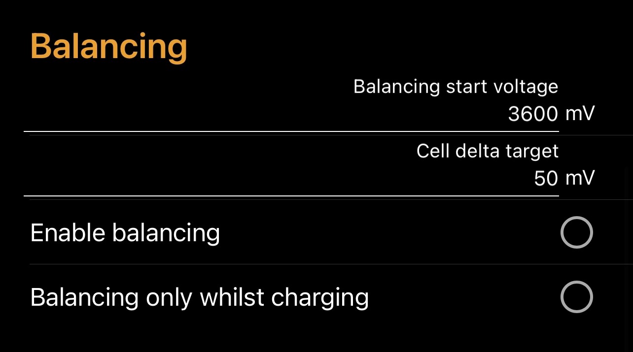 Balancing only whilst charging: ON/OFF