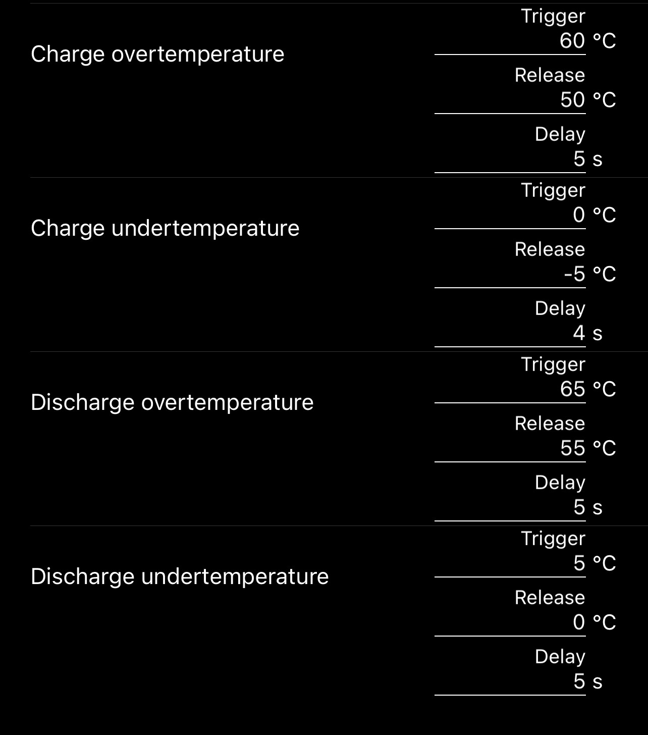 - I searched a lot on Google and also read the Overkill Solar doc, but still as I am not 100% sure, to be "better safe then sorry", may I ask your kind help what's the best value to write into these config fields (based on specs above) to ensure that I am able to use my battery ? :