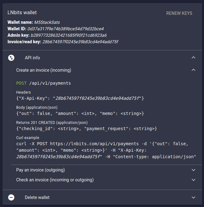 Each wallet also comes with its own API keys, to help partition the exposure of your funding source.