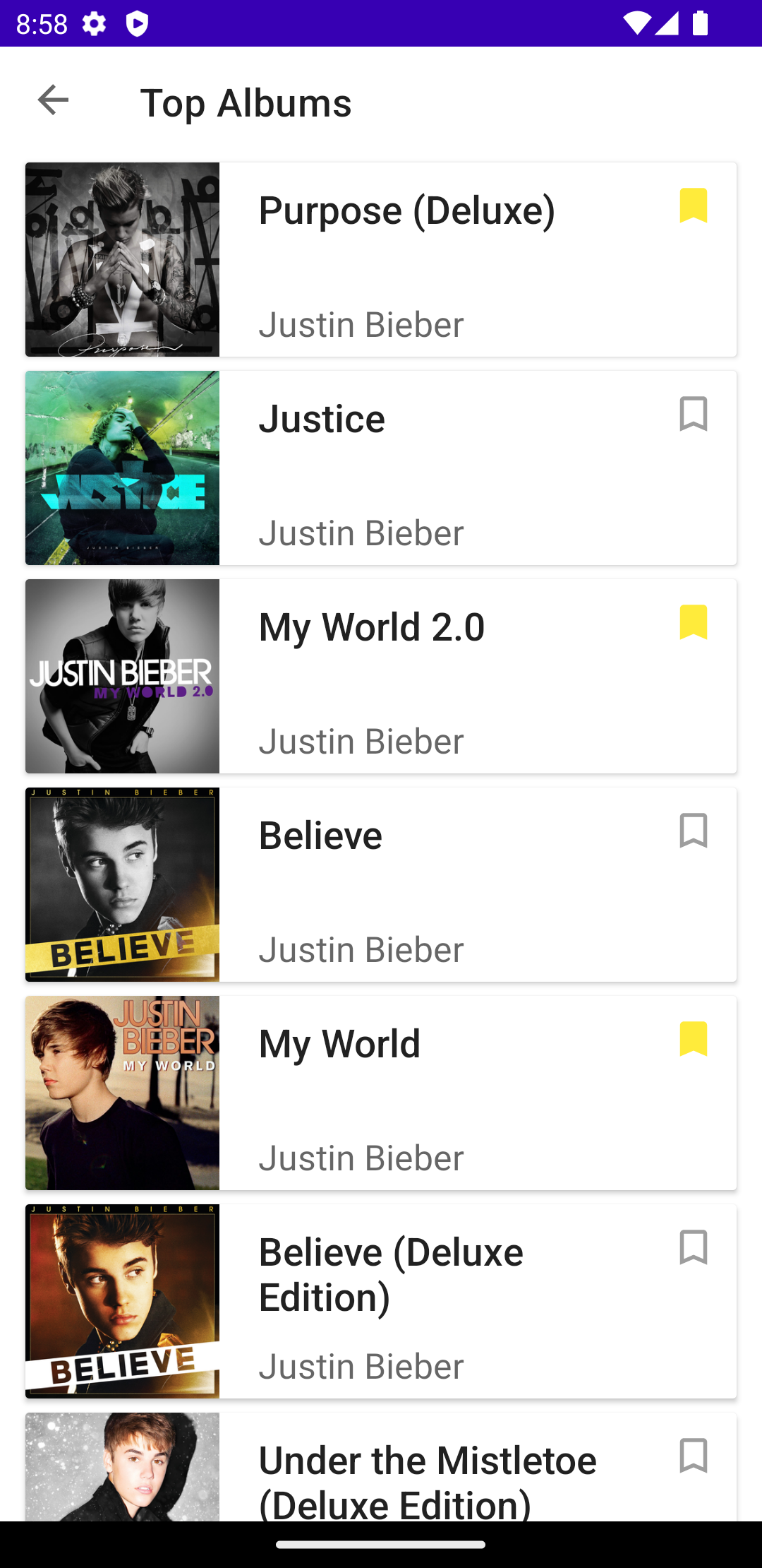 - Top albums - when user clicks on an album, the apps navigates to top albums to show the top albums of that specific artist.