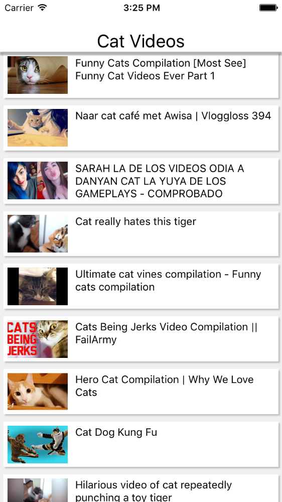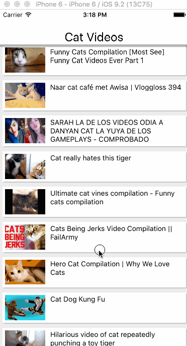 - Fill out missing pieces of the List Item so that it looks similar to the items below and is pressable. Hint: YouTubeList is already for the the transition to the player, but you must pass data to the handler!