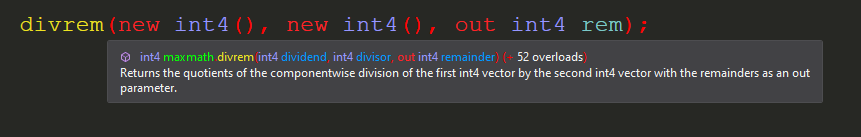 Unity.Burst.CompilerServices.Constant.IsConstantExpression<T>()to include code typically only found in optimizing compilers. This functionality allows MaxMath to choose more optimized code paths at compile time, and users can influence this behavior via the optionalPromiseenum parameter available in many functions. - Easy To Use: MaxMath is just as easy to use as Unity.Mathematics. It supports features like
