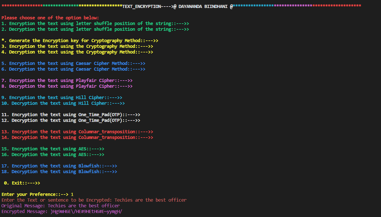 Text Encryption and Decryption is the process of converting the Plain text to the Cipher text which is unreadable normally for a human being. generally this technique used for end to end Encryption when any secure message transferring will happens. So, to ensure the security and for the concern of privacy this technique used. Here this tool will help you to encrypt your normal text into a random join of different literals [cipher text]. It provides different types of features and encryption technique by so that the user will customise him/herself accordingly.