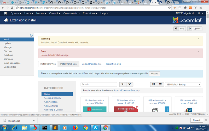 Hi there, I tried installing this plugin on my joomla 3.7.3 Site and got the error "JInstaller: :Install: Can't find Joomla XML setup file" How can resolve this?