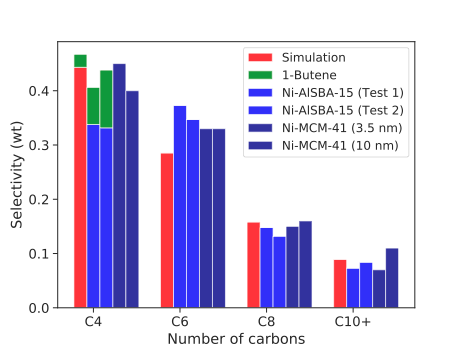 Eley-Rideal and Surface Migration families came from "Ethylene Dimerization and Oligomerization to 1-Butene and Higher Olefins with Chromium-Promoted Cobalt on Carbon Catalyst" Doi:10.1021/acscatal.7b03205. After generating a model and reproducing their experiment in cantera, I found the RMG generated model matches well with published results, with the one caveat being this was not on Cr but on a metal with -5.5 eV and -2.5 eV binding energies for carbon and hydrogen. For the other added families, I was trying to see if RMG can reproduce the mechanism found in "Mechanism of Methanol Synthesis on Cu through CO2 and CO Hydrogenation" by Grabow and Mavrikakis and added the majority of the reactions found in their mechanism. Originally, RMG had no way to react with vdW species once they adsorbed to the surface, so they'd only be able to adsorb and desorb. These new vdW families help to get rid of that dead end. Running meOH synthesis with all of the new families turned on, I am able to successfully generate a model. Thefull model can be found here |