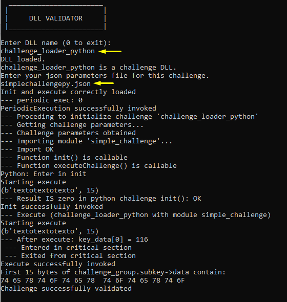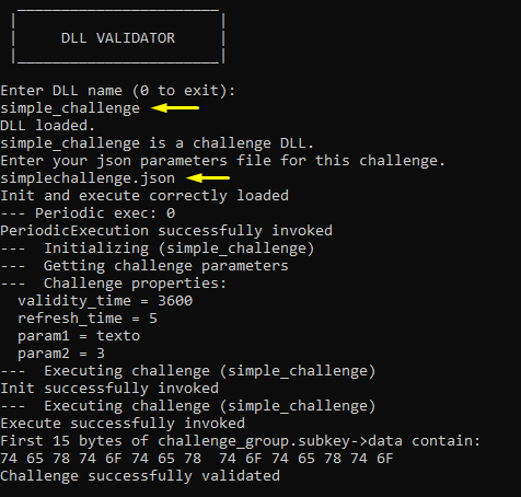El módulo python (fichero .py) que contiene tu challenge debe estar en el directorio donde se encuentre el mismo ejecutable (DLL_validator.exe) para que el programa validador pueda encontrarlo.