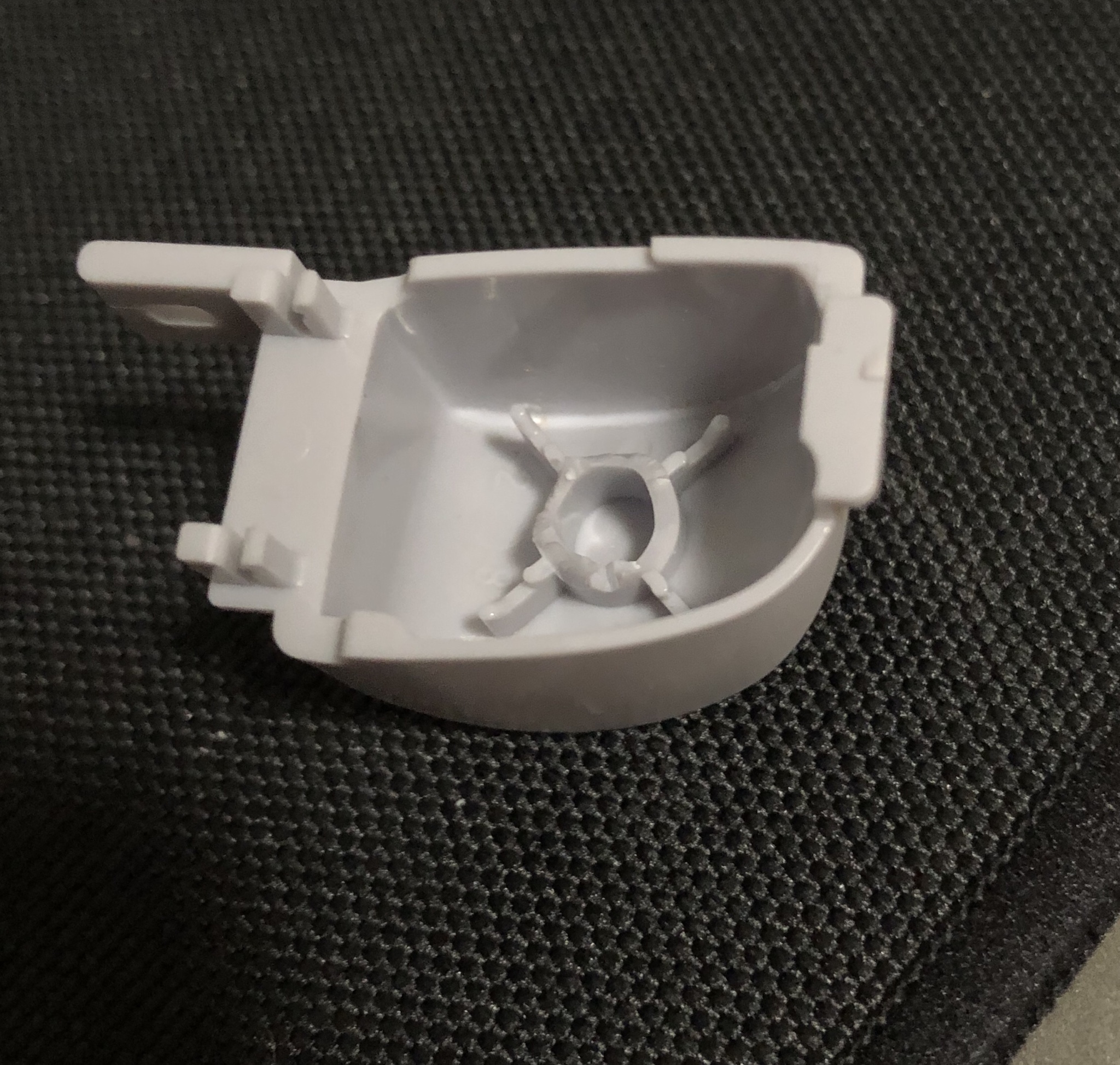 - Trim down trigger barrel. I just used flush cutters, and the plastic snaps off near the base. Leave some of the barrel so the plug will fit in nice and snug. End result should look like this: