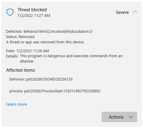 Make sure that the Detected: string includes AccessibilityEscalation.