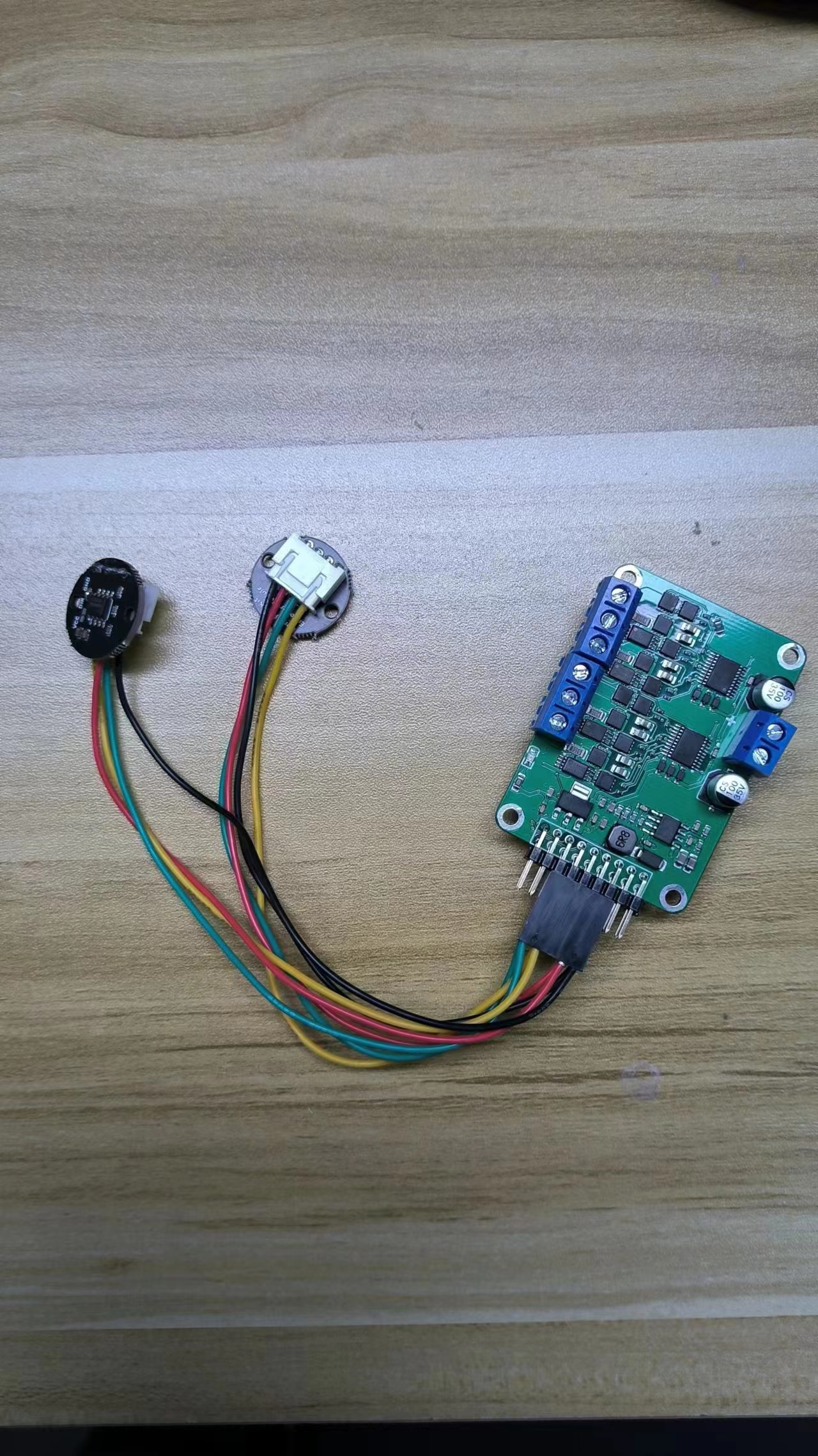 - MPU6050陀螺仪接线端子红色线代表VCC,黑色线代表GND,黄色线代表SCL,绿色线代表SDA,接线端子一端MPU6050连接,一端与AS5600编码器相连。