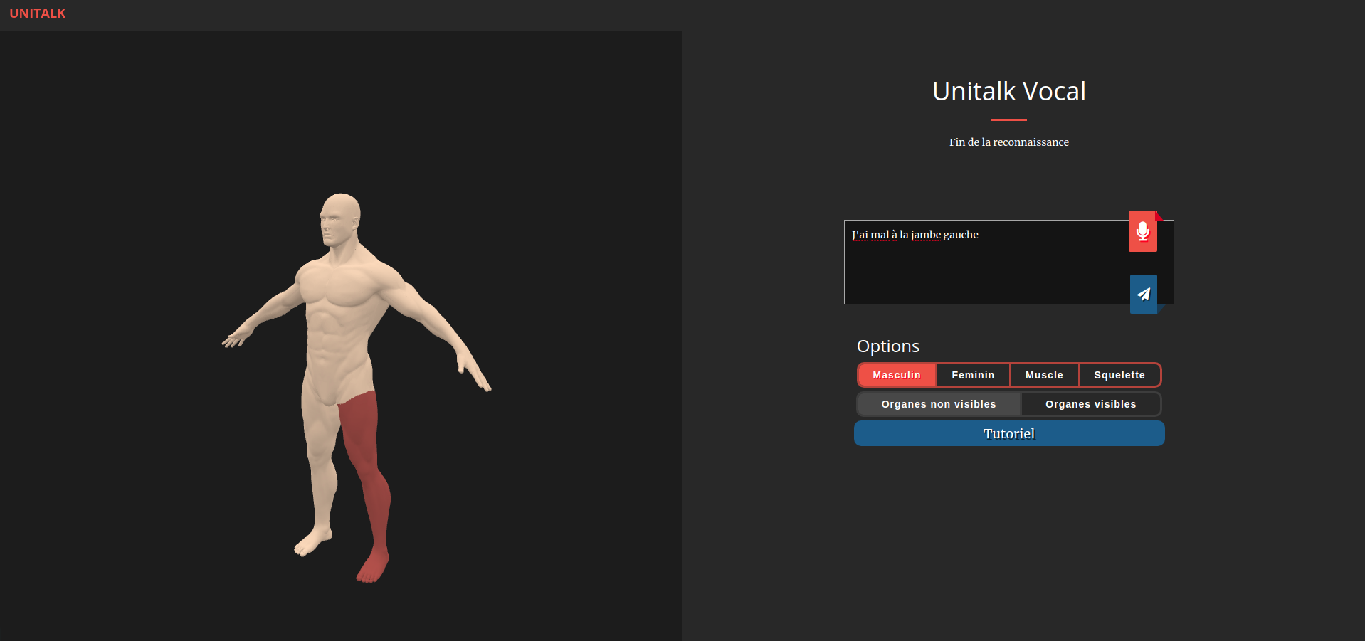 Unitalk is an artificial intelligence capable of understanding natural language in a patient / doctor context and highlighting a visual representation of the patient's condition.