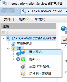 打开IIS管理器,并右键后点击添加网站。