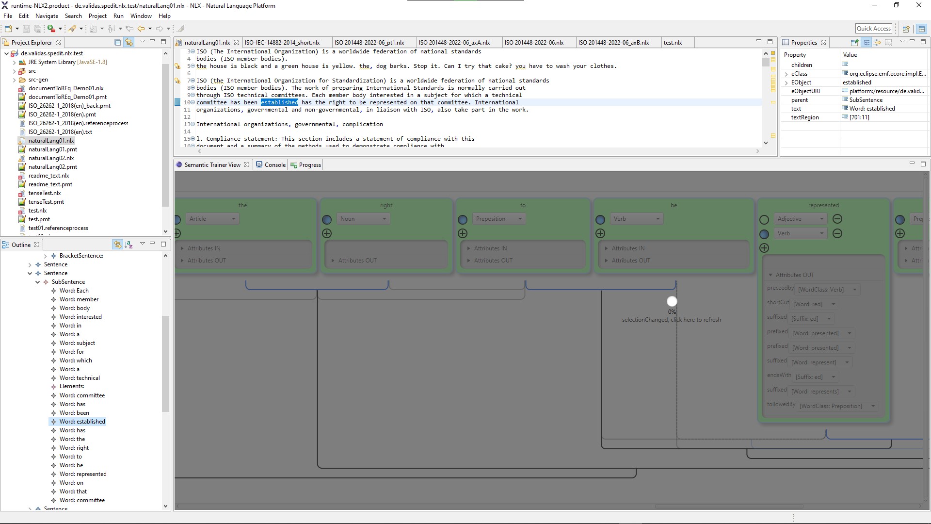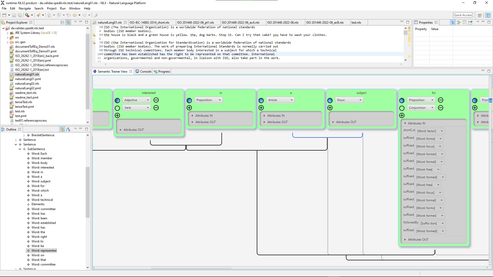 this software, (which is currently in prototype state) represents an extendable platform for all kinds of natural language processing. Core of this software builds a DSL generated with the XText Framework. This DSL can turn text of natural language documents into a DAG tree of the document content. It creates a Tree from: