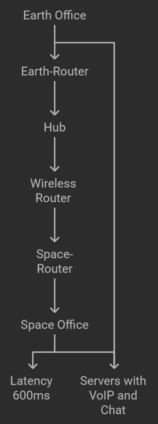A simulated space communication system demonstrating client-server architecture with error handling, packet transmission, and satellite communications.