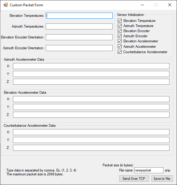 We also have the ability to create custom packets that we can either send to this program, or the control room. This exists primarily for creating unit tests to test the various parts of the application.