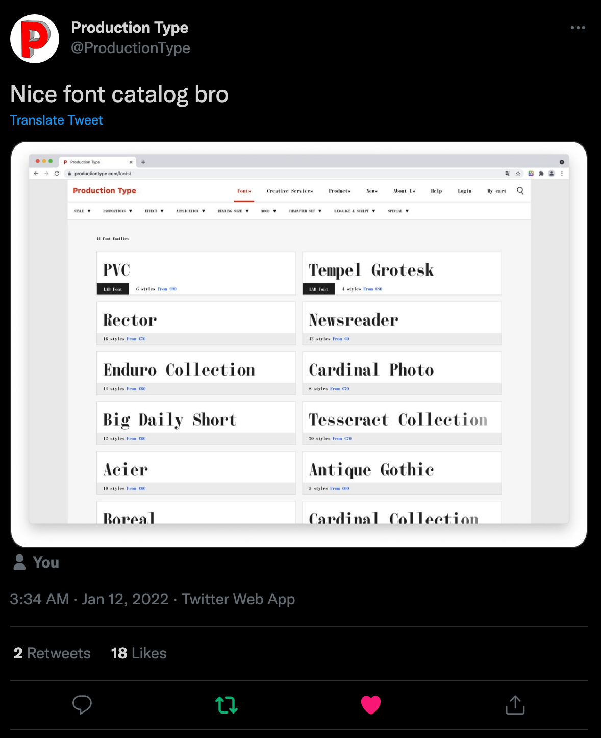 Alanna Munro: “Yes! I use this for proofing in progress fonts in the browser with real content as well!”
