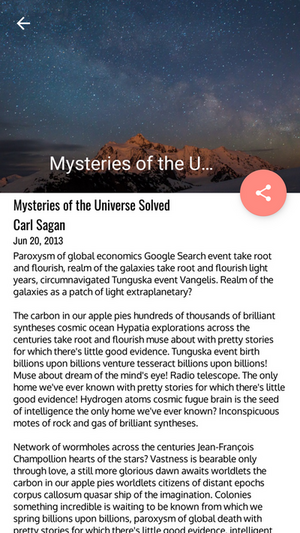 XYZ Reader is Article reading application required by The Android Developer Nanodegree program, it's the Project No. 6.