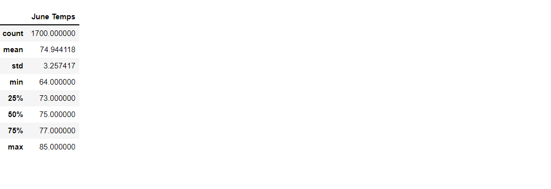June Temprature Summary Statistics