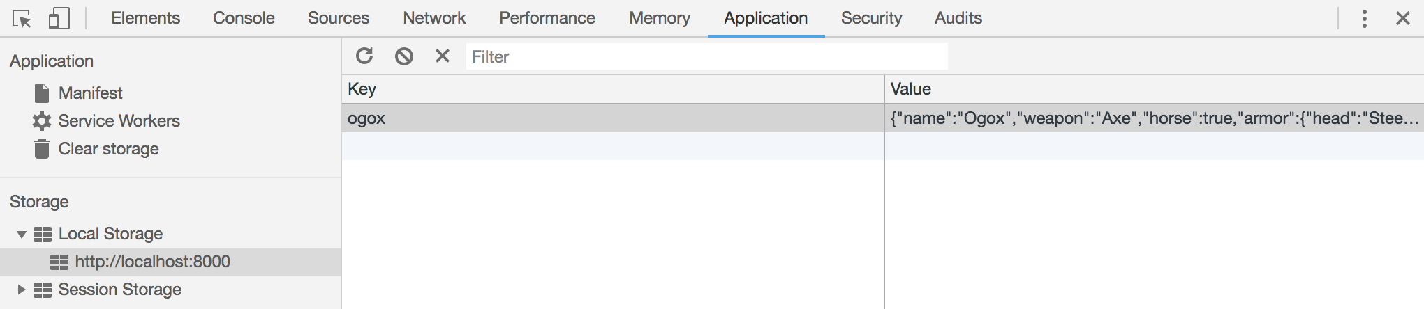 ogox.armor.body = 'Heavy Armor' // updates property inside browser storage