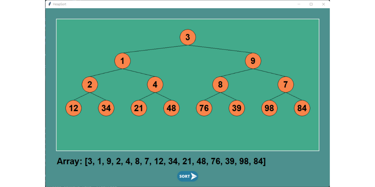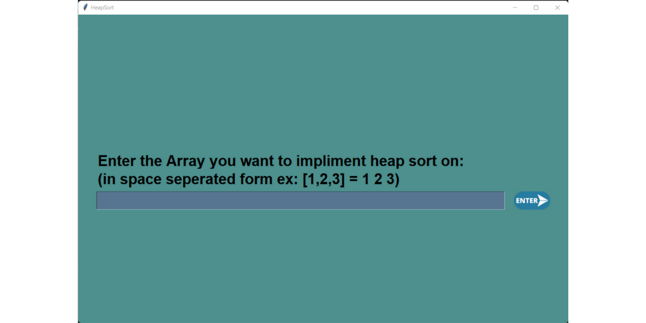 This is a Python Program that helps you to visualize heap sort if you provide a heap sort to it in the form of a space separated array ex - [1,2,3,4]=1 2 3 4. To run the project download the three files in the same folder(make sure that the images are in png format and Named as ENTER.png and SORT.png) and then run the drawing.py using any compiler like vscode,pycharm etc.