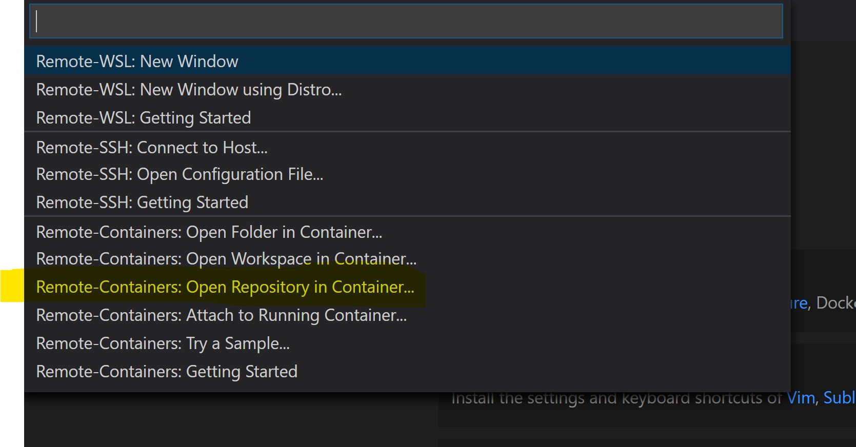 - Install Remote containers plugin https://marketplace.visualstudio.com/items?itemName=ms-vscode-remote.remote-containers