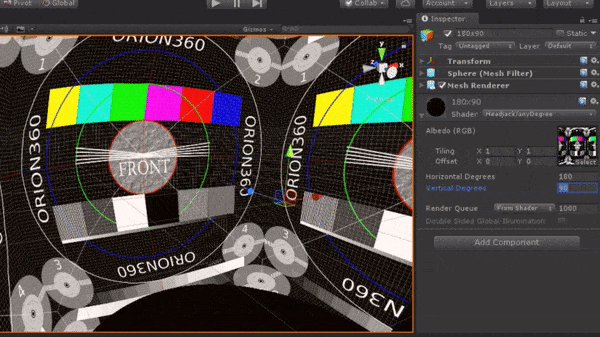 Inside, you find some example scenes with example materials, and the amount of viewport degrees can be set using the Horizontal Degrees and Vertical Degrees sliders.