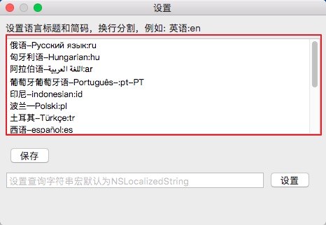 - 支持读取源码NSLocalizeString()(或者其他自定义)读取键值保存到原语言包