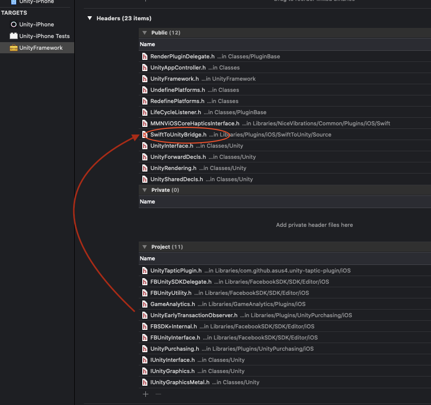 After that, I added the header to UnityFramework.modulemap