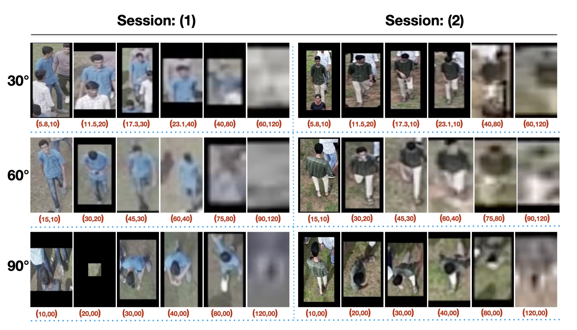 - 18 UAV viewpoints per subject — altitudes 5m to 120m, distances 10m to 120m, pitch angles 30°/60°/90°