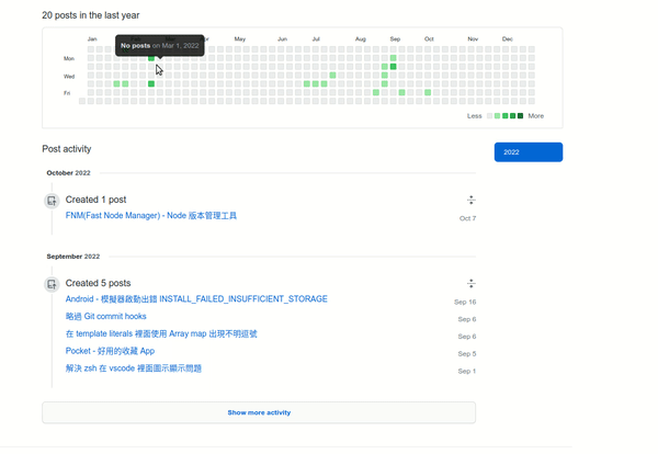 Make yearly-contributions graph clickable like github does. When you click on specific day, it will show you the posts added that day.