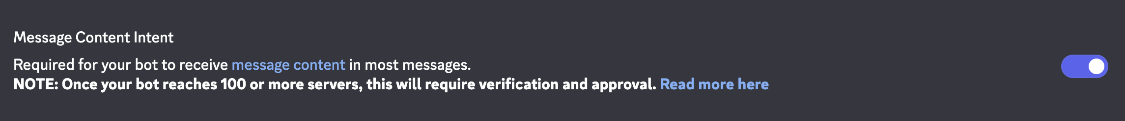 - Ensure "Message Content Intent" is ticked