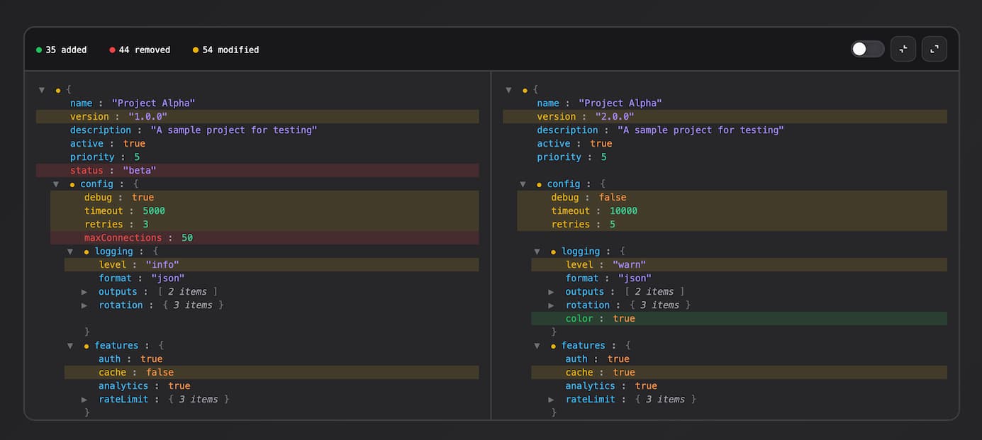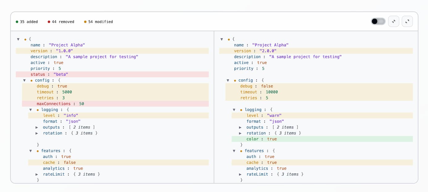 npm i json-diff-viewer-componentimport "json-diff-viewer-component";