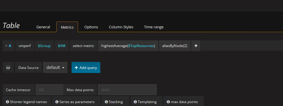 Thanks for great work. Not sure if I just missed something or if there is anything else that has to be done but my dashboard is all empty. The script runs fine and in Grafana I am able to see the vmperf value. Default it looks like below. However if I do change values from $group and $vm to * i do get some values and info but I suppose this is not correct.
