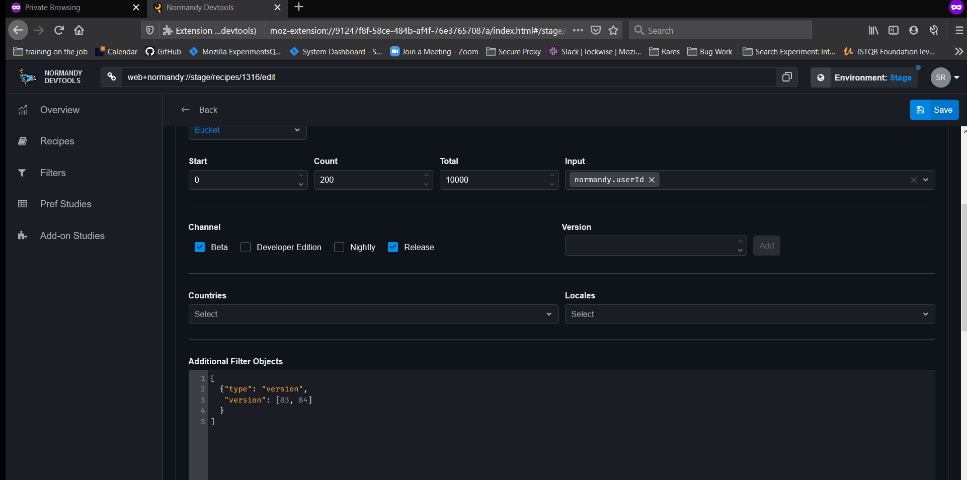 - Open the Normandy Devtools and choose the Stage environment.