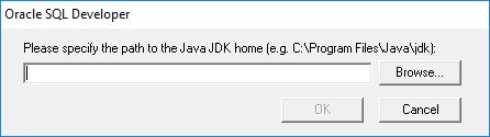 Nel caso si scelga la versione senza JDK oppure venga eliminata (o rinominata) la cartella jdk dalla directory di SQL Developer verrà mostrato il seguente messaggio (solo la prima volta):