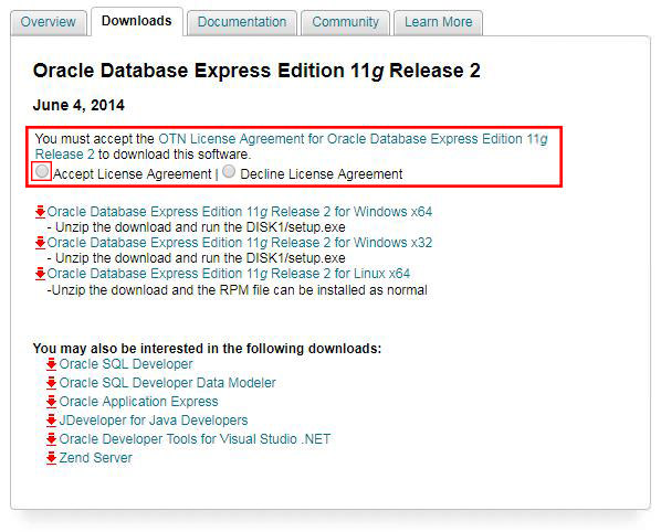 Per scaricare file dal sito di Oracle bisogna accettare prima i termini di servizio ed inoltre registrarsi o accedere.