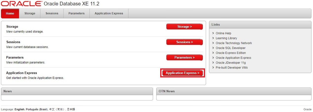 Questa è la homepage di Application Express: