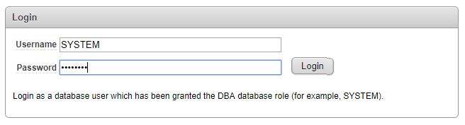 E' ora necessario cliccare sul tasto Application Express (come indicato dall'immagine precedente) e si verrà reindirizzati ad una pagin richiedente un login dove bisogna inserire come username SYSTEM e per la password quella scelta durante l'installazione: