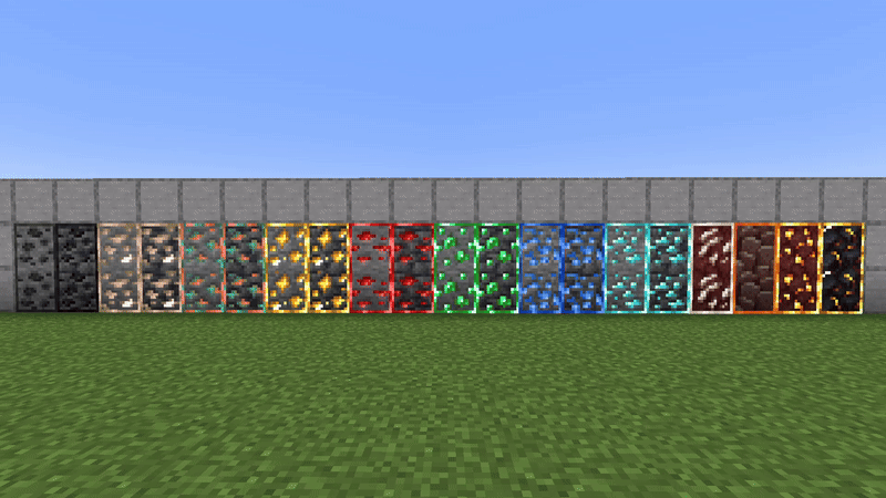 Introduction A resource pack that changes the appearance of plain vanilla ores to animated ores with borders. They are emissive. GIF